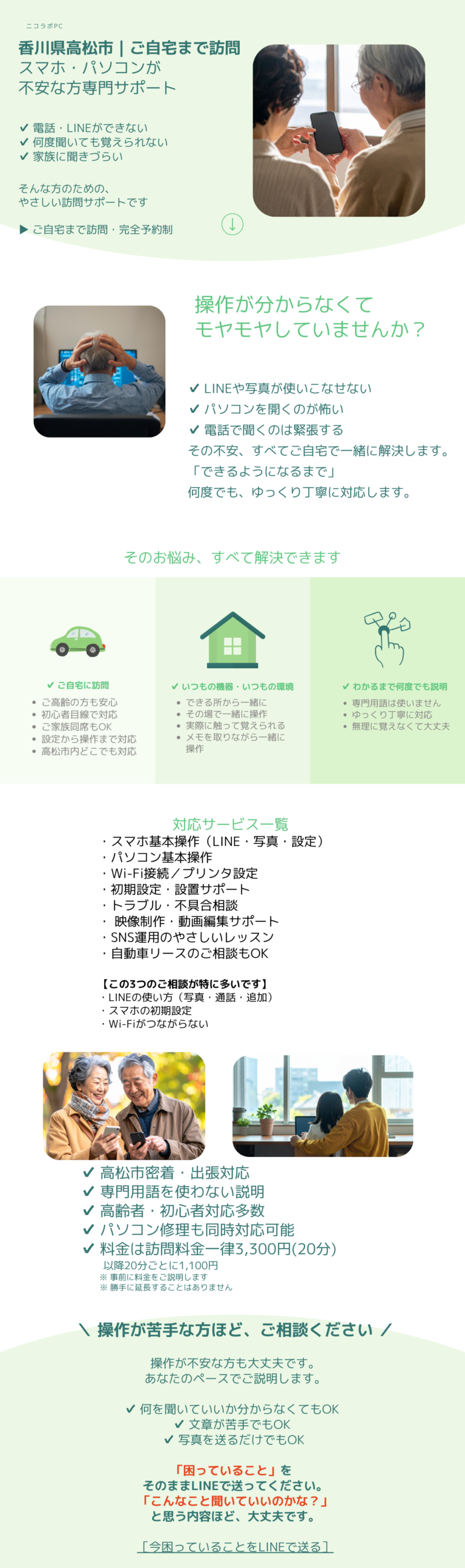 ※ 本サービスは上福岡町・瓦町・伏石町など高松市内全域で訪問サポートに対応しています。